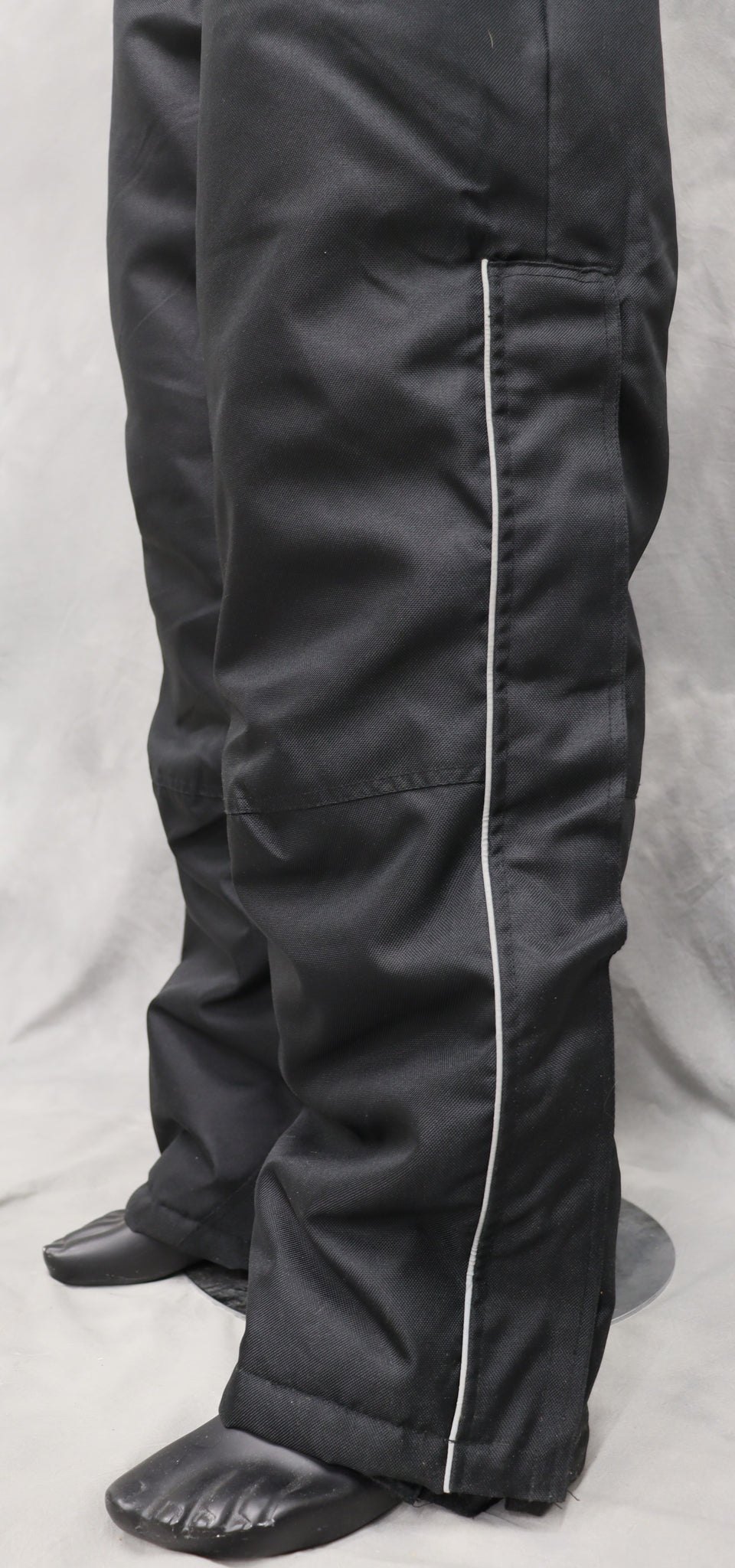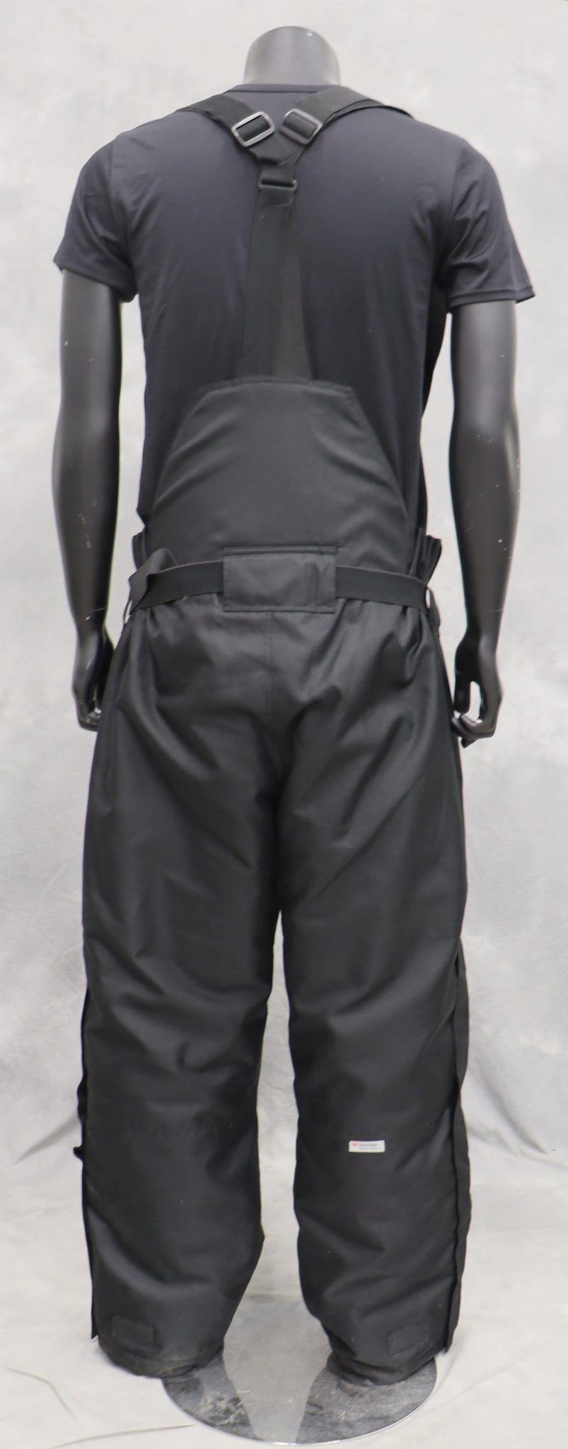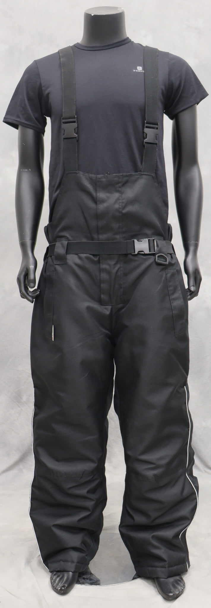 Housuissa säädettävät henkselit ja vyö. Lahkeissa vetoketjut ja tarrat. Alaselän alue ohuesti kovitettu. Lahkeensuissa kulumaa.