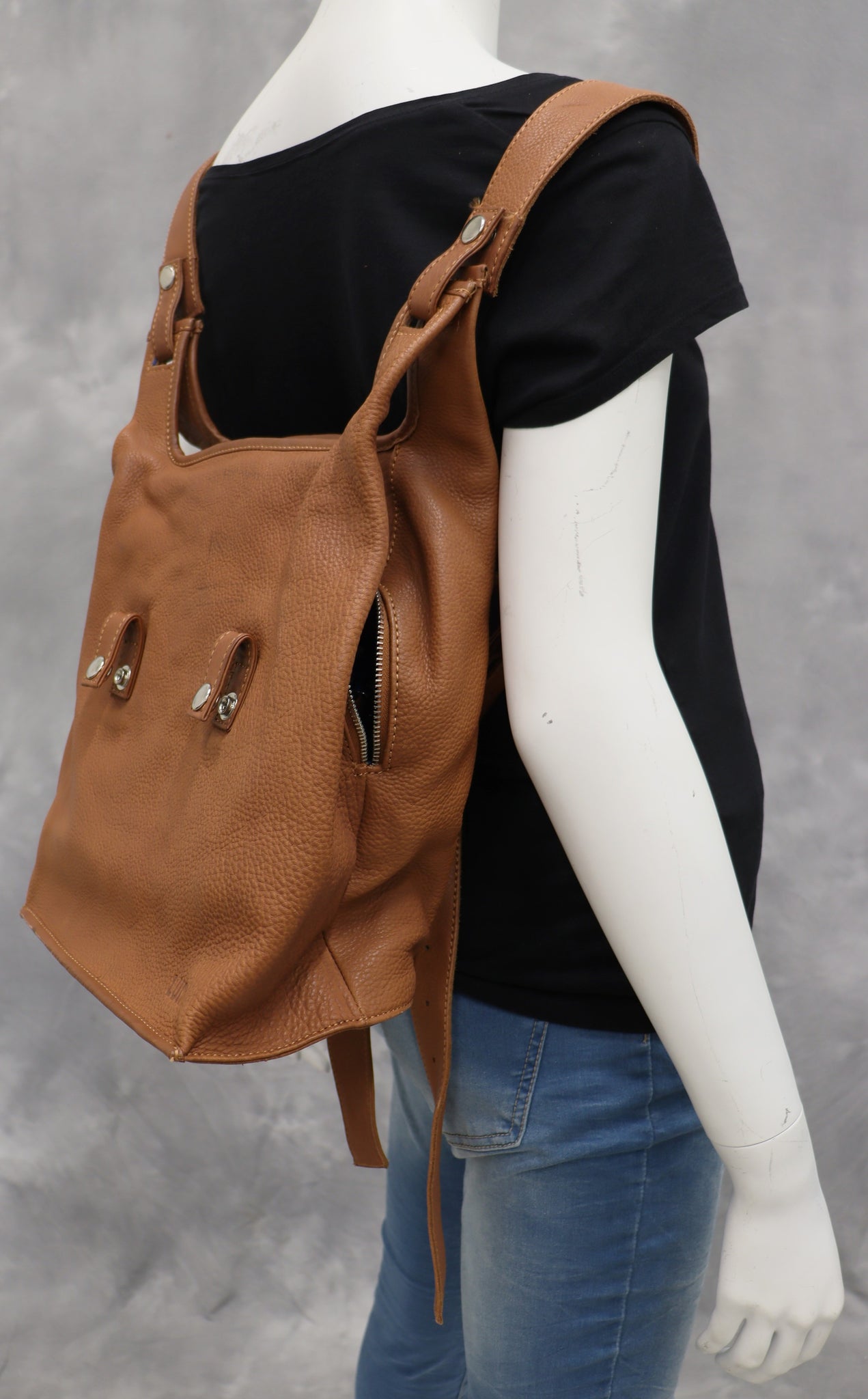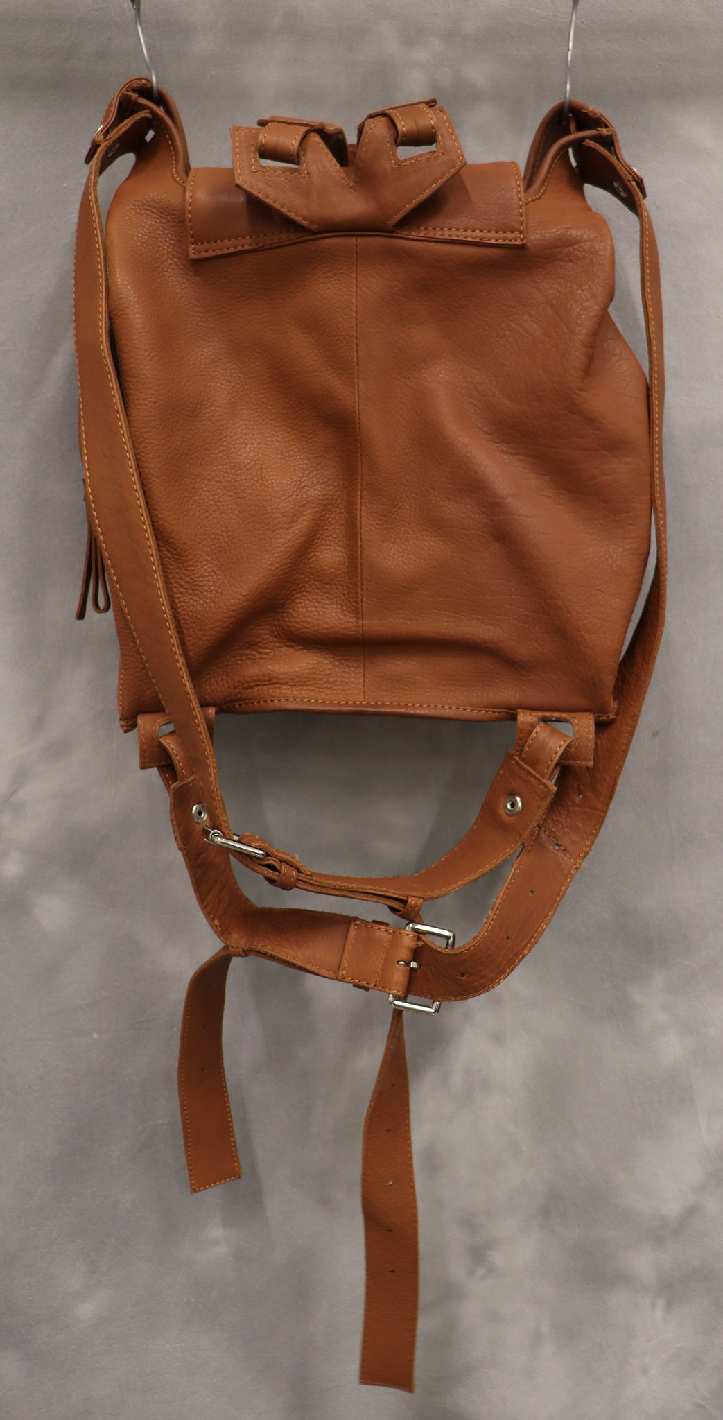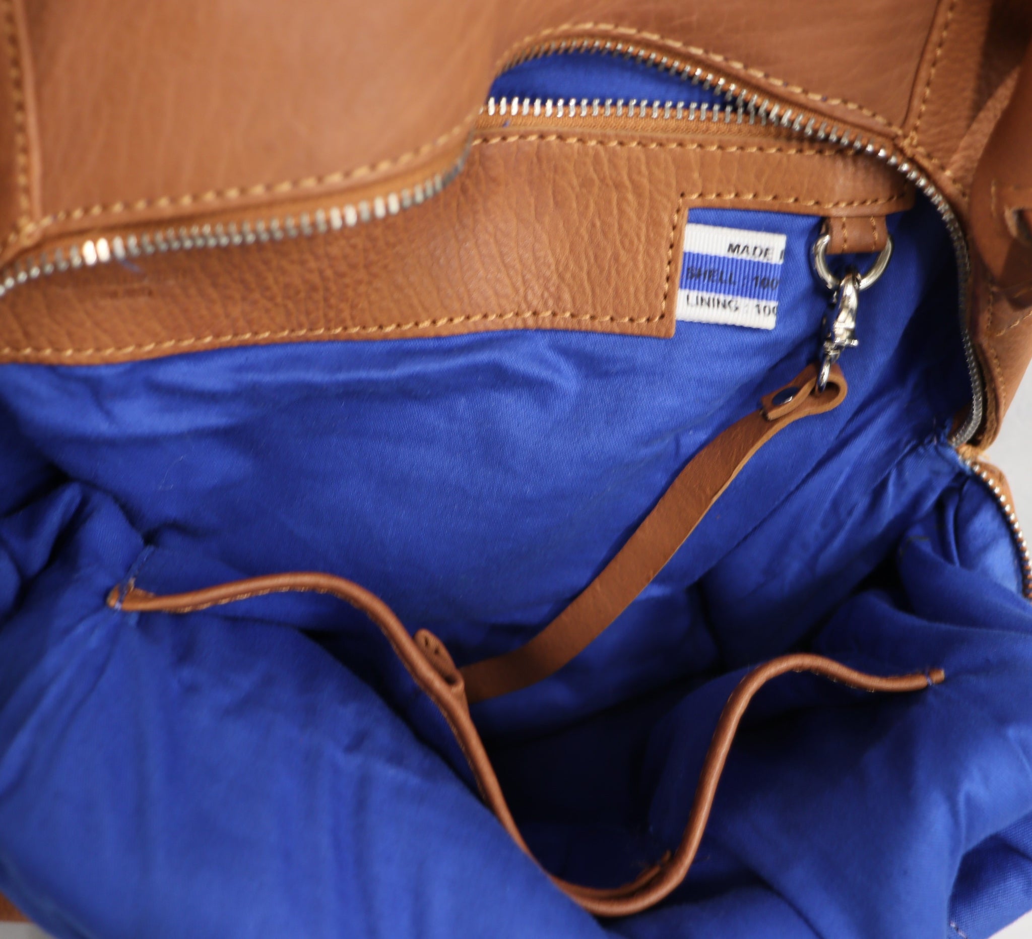 Muuta huomioitavaa: Säädettävät olkahihnat. Neppariläppä- ja vetoketjukiinnitys. Sisällä 2 avointa taskua ja 1 vetoketjutasku, josta puuttuu nahkainen vetolenkki. Edessä tummia tahroja, jotka jäävät suljettaessa läpän alle piiloon.