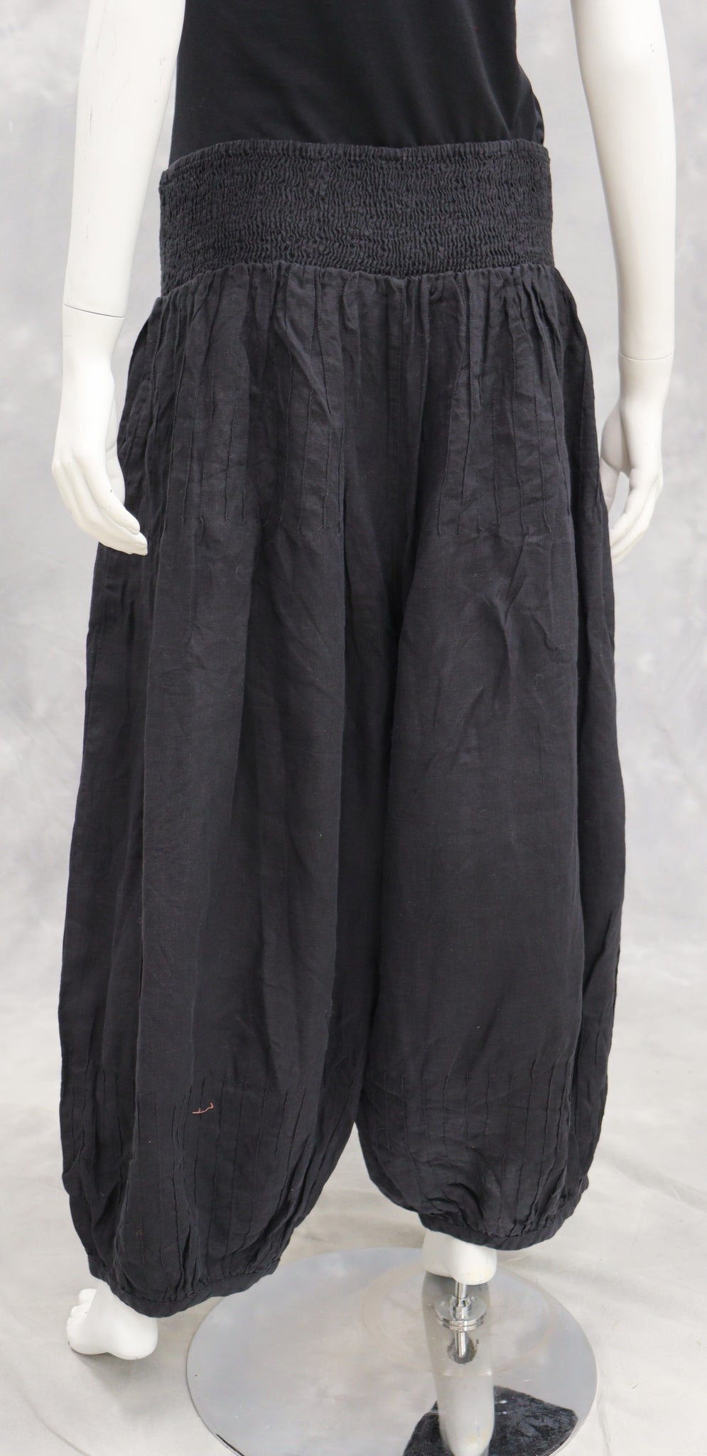 Muuta huomioitavaa: Vyötärö erittäin joustavaa smokkirypytystä. Ilmavaa ja hengittävää pellavaa, sopii niin kesähelteille kuin kerrostettuna talveenkin.