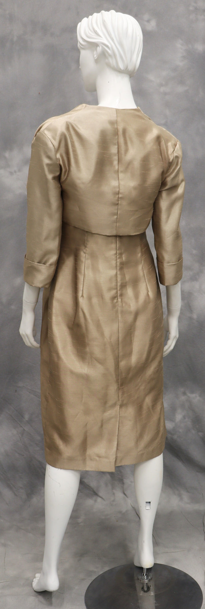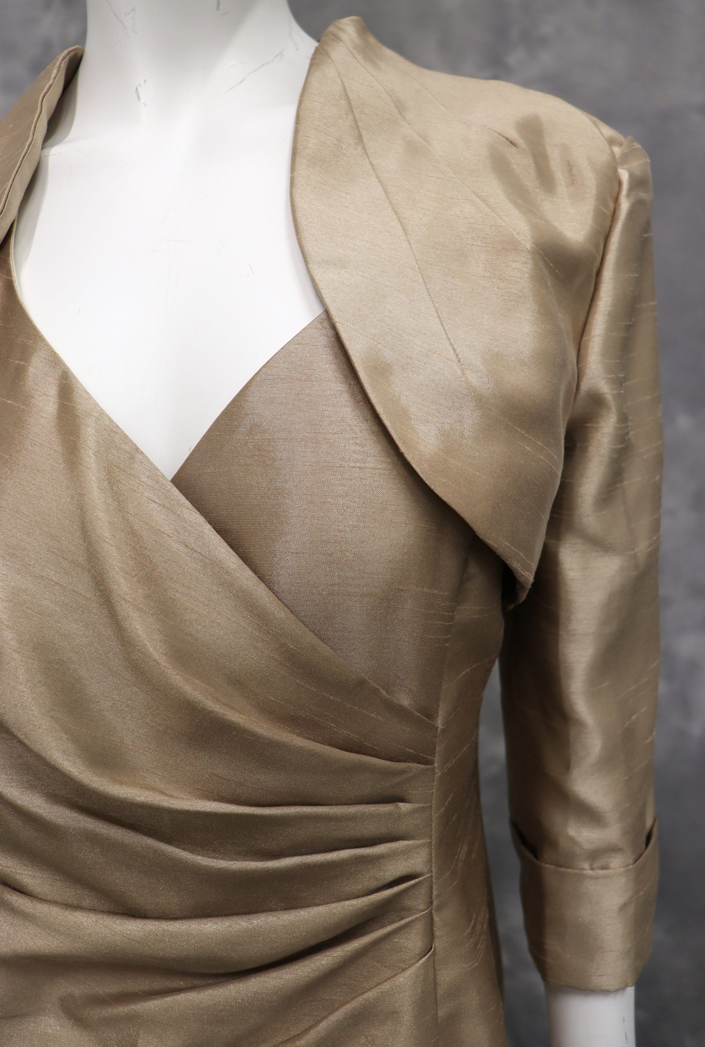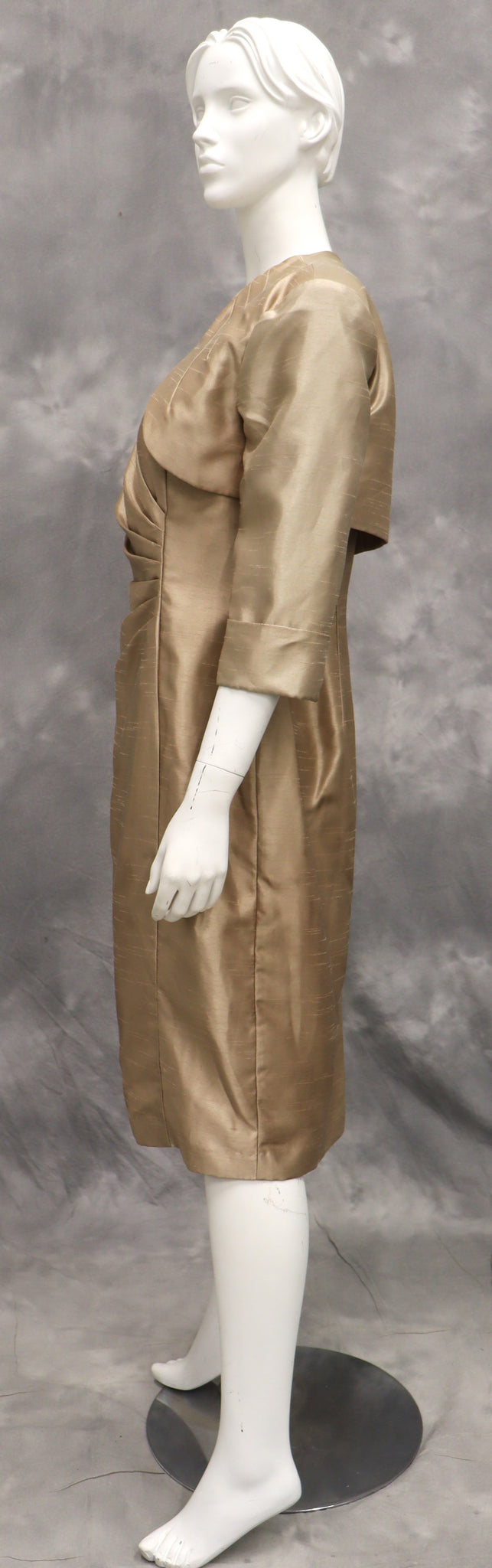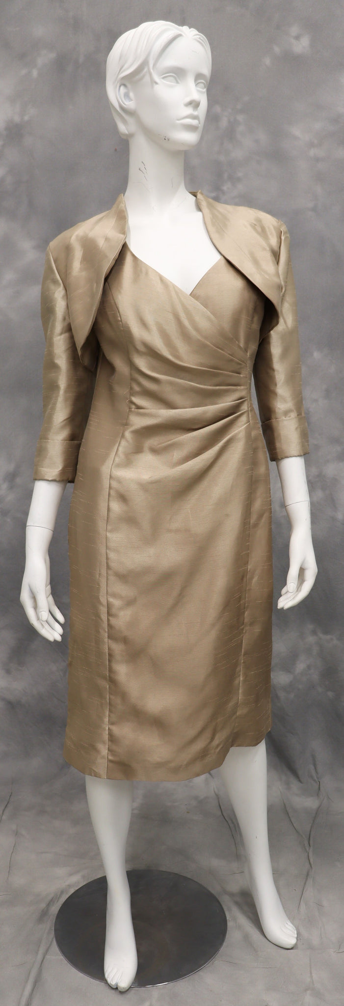 Muuta huomioitavaa: Myydään settinä, ei erikseen. Mekon selässä vetoketju. Mekossa ohut vuori ja alushame. Bolerossa vuori ja olkatoppaukset. Mukana alkuperäiset hintalaput.