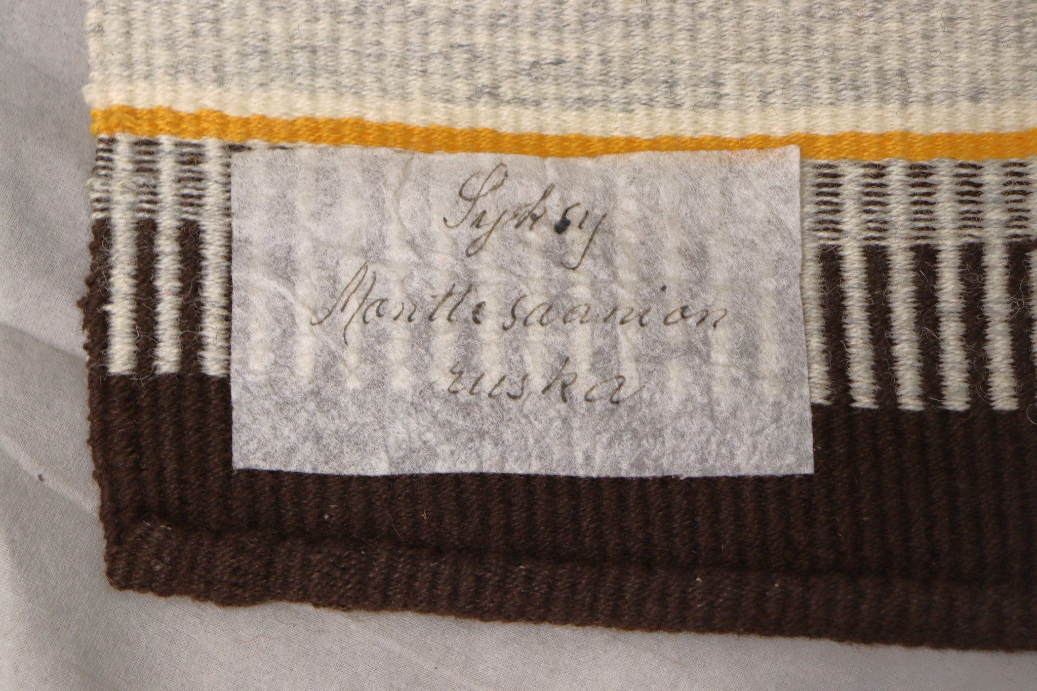 Muuta huomioitavaa: Värikäs ja näyttävä seinävaate, jossa merkintä "Syksy Maritta Saanion ruska". Alhaalla kulmissa on lettikoristeet. Tekijästä ja designista ei löydy tietoa internetistä. Hinta arvioitu hyvän kunnon sekä muissa verkkokaupoissa aiemmin myytyjen identtisten tuotteiden hintojen perusteella.